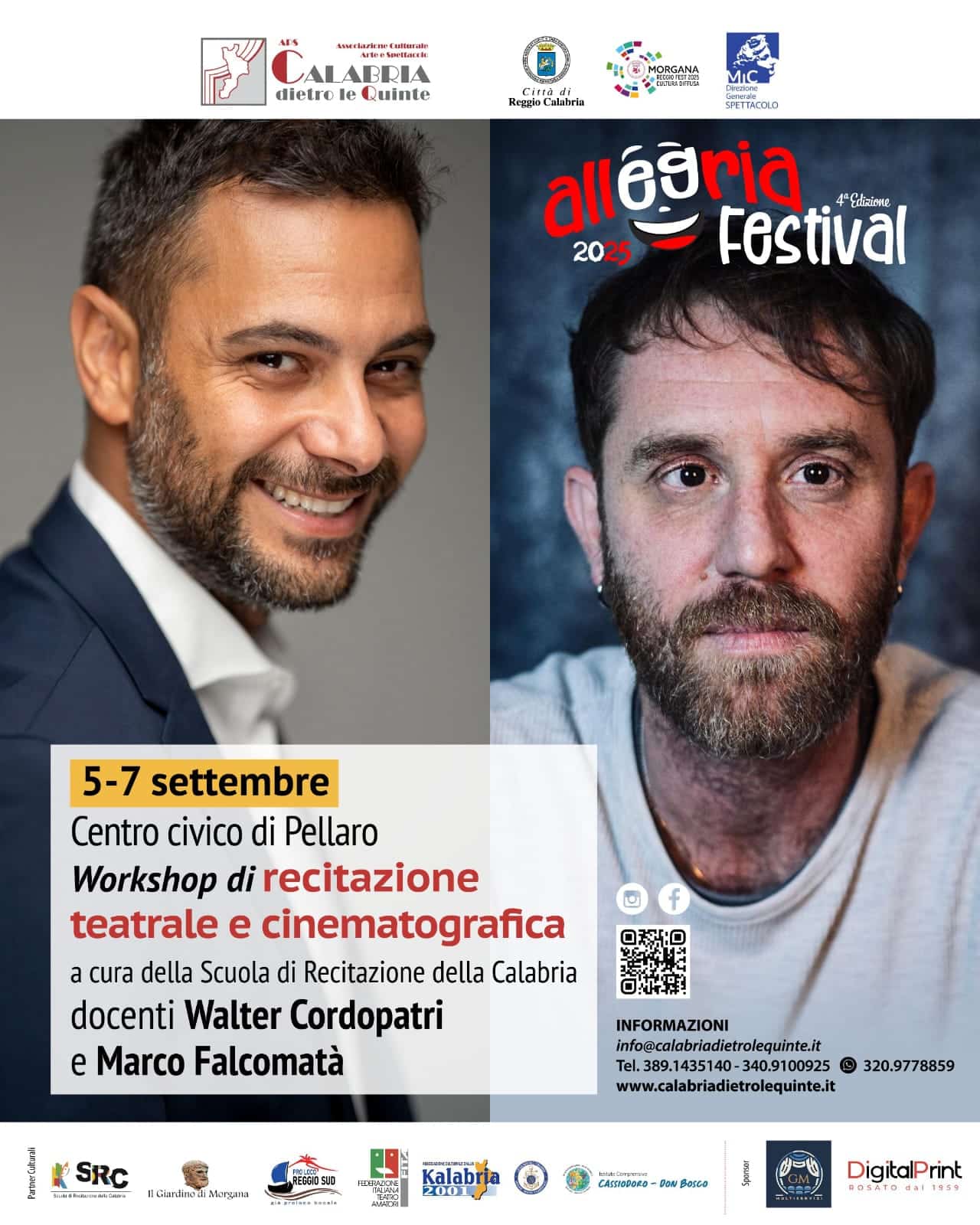 - Bonifico su C/C bancario n. 100000076407 intestato ad “Associazione culturale arte e spettacolo Calabria dietro le quinte” - IBAN: IT39 D033 5901 6001 0000 0076 407, specificando nella causale il proprio : “Nome e cognome. Iscrizione workshop di teatro – Allegria Festival 2025”.